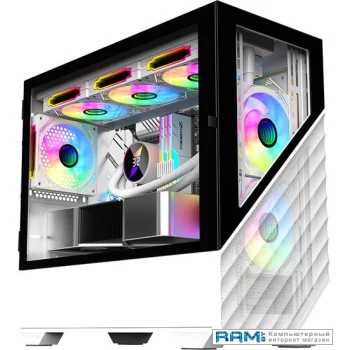 Форм-фактор ATX, типоразмер Midi-Tower, открывание: дверца, нижнее расположение БП, возможность установки СВО, сталь, белый, размеры 423x210x365 мм, вес 0.5 кг.