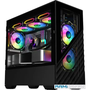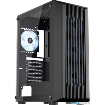 Форм-фактор ATX, типоразмер Midi-Tower, открывание: дверца, нижнее расположение БП, возможность установки СВО, сталь, черный, размеры 423x210x365 мм, вес 0.5 кг.
