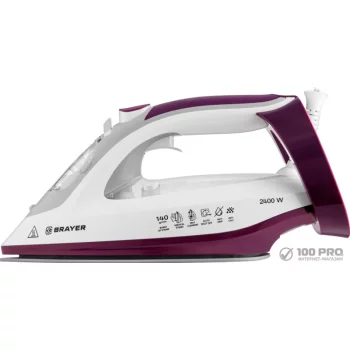 Бытовой, мощность 2600 Вт, объем для воды 360 мл, постоянная подача пара, автоматическое отключение, система самоочистки, противокапельная система, шнур 1.9 м, цвет фиолетовый.