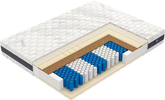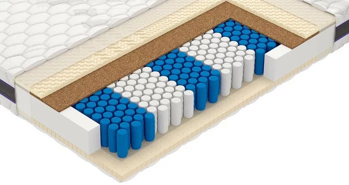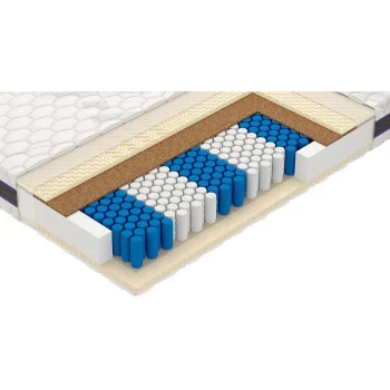 Среднежесткий / средний, двухспальный / односпальный, ширина 80 ... 200 см, длина 190 ... 200 см, высота 23 см, базовый блок: независимые пружины, настилочные материалы: латекс: 50 мм (30+20). Кокосовая койра: 20 мм (10+10). Мебельная сетка: 2 слоя.