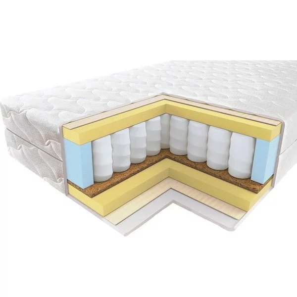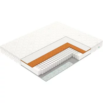 Среднемягкий / средний, двухспальный / односпальный, ширина 60 ... 200 см, длина 160 ... 200 см, высота 20 см, базовый блок: независимые пружины, настилочные материалы: пенополиуретан (поролон): (Smartflex), Кокосовая койра, Съёмный чехол, Тип ткани чехла: жаккард, Стёганый чехол.