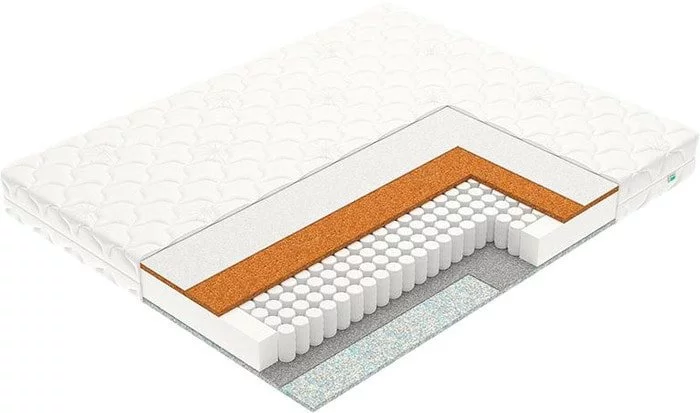 Среднемягкий / средний, двухспальный / односпальный, ширина 70 ... 200 см, длина 160 ... 200 см, высота 19 см, базовый блок: независимые пружины, настилочные материалы: пенополиуретан (поролон). Кокосовая койра., Съёмный чехол. Тип ткани чехла: трикотаж. Стёганый чехол.